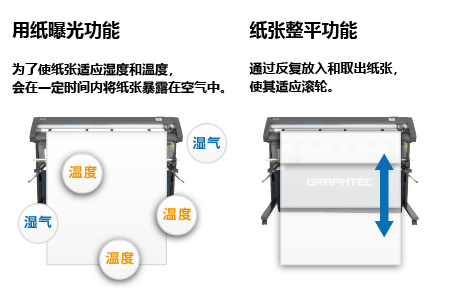 介质进给系统的设计可确保绘图或切割前装载的介质适应于环境温度和湿度。用户可选的介质预进给功能设置了两个外轨道,以改善对介质的处理。