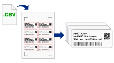 这是一个可以将CSV文件中的数据自动插入到设计数据中并进行打印的功能。