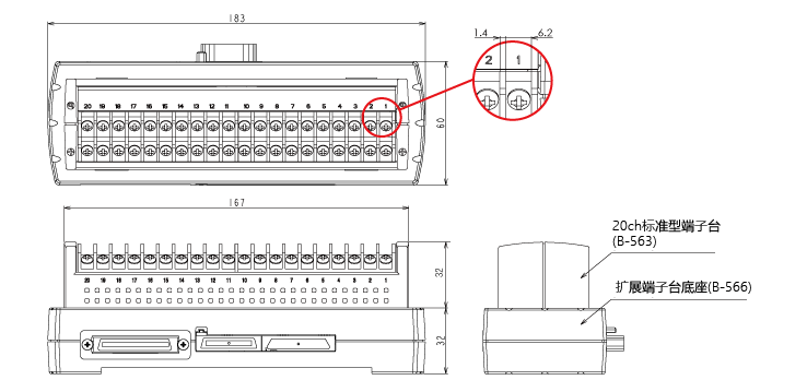 | 扩展端子台底座(B-566) | – | – | 2 | 2 | 4 | 7 |