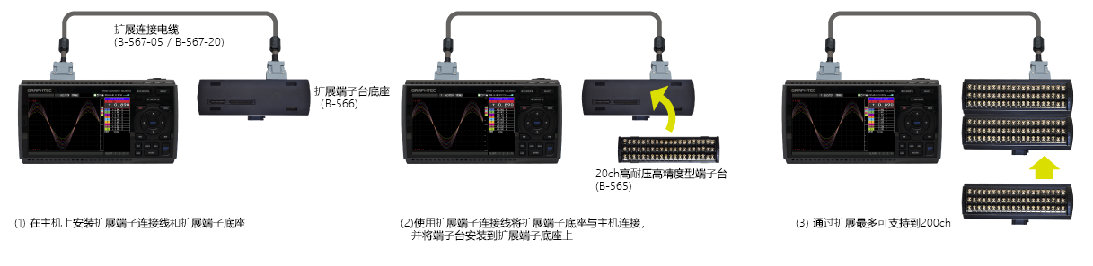 输入端口与GL860可通过扩展连接电缆(50cm / 2m)进行扩展